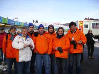 Je herkent ze zo. Buiten gaan ze gekleed in oranje jacks, binnen zijn het oranje T-shirts. Een groot hert achterop de rug, Putten 2029 in dikke letters eronder. Want daar zijn ze voor in Turijn. De zes vrienden - die niet allemaal meer in Putten wonen, maar er wel zijn opgegroeid - verkopen het goed in Turijn. Er wordt over gepraat.